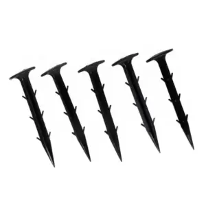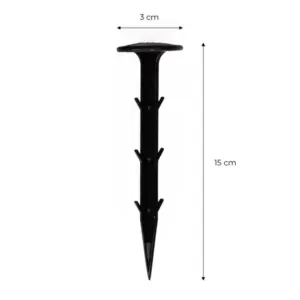 A speciális kialakítású rögzítő kampók segítenek abban, hogy az anyag a helyén maradjon, és ne mozduljon el szél vagy használat közben sem. Az éles hegynek és a széles fejnek köszönhetően a tüskék gyorsan és kényelmesen telepíthetők, akár földbe csavarva, akár beütve.