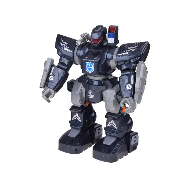 Nagy, 38 cm-es távirányítós rendőrségi robot, amely fény- és hanghatásokkal, lövedék kilövéssel, táncoló demó móddal és állítható hangerővel teszi élménnyé a játékot.