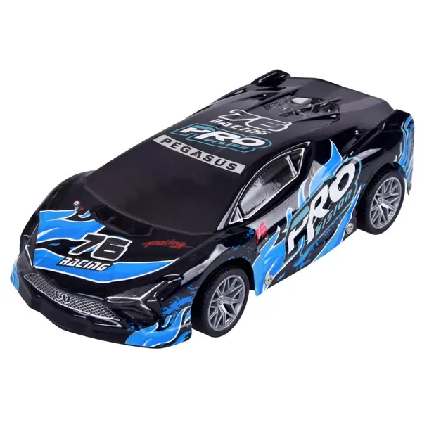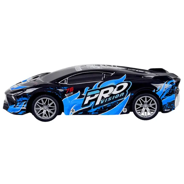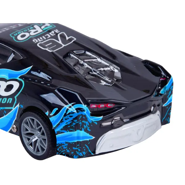 Ez a távirányítós sportautó remek választás a gyors autók és a pörgős játék kedvelőinek. Könnyű, mégis strapabíró fekete műanyag karosszériája színes feliratokkal díszített, sportos megjelenést adva a modellnek. Menet közben a karosszéria látványosan világít és villog, ezért szürkületben különösen látványos.