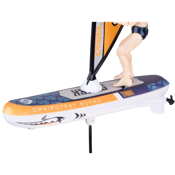 Lepd meg a vízi sportok rajongóit ezzel a valósághű távirányítós szörfdeszkával, amely beépített LED-világítással ragyog a sötétben is. A szörfös figurája valóban mozgatja a vitorlát, így minden kanyar és forduló látványos élményt nyújt a medencében, tóban vagy akár a fürdőkádban.