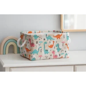 A kompakt, téglalap alakú textil kosár vidám dínós mintájával könnyen rendszerezhetővé teszi a játékokat és pelenkákat. Erősített falai stabil tartást biztosítanak, mégis összehajtható, ha szabad helyre van szükség.