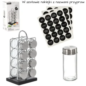 • Elrendezés: 2 oszlopban 4-4 üveg, így minden fűszer jól látható és gyorsan elérhető.