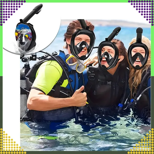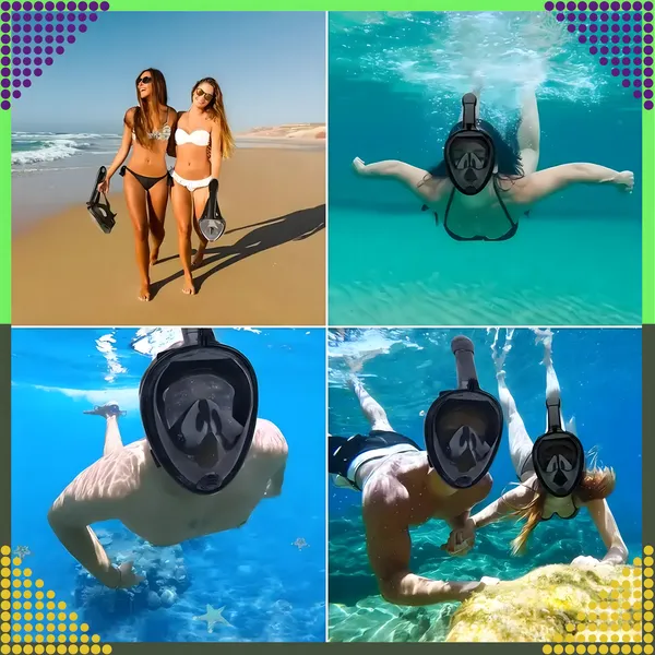 Teljes arcú búvármaszk felnőtteknek (L/XL) – a modern megoldás, hogy természetes módon, orron és szájon át lélegezhess a vízfelszín alatt is.