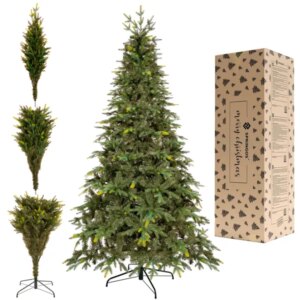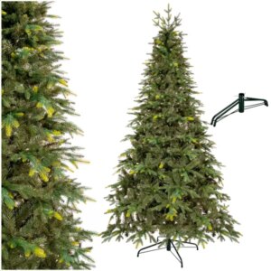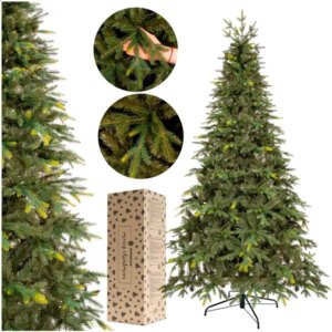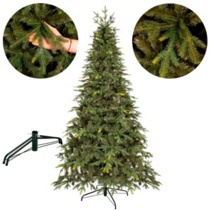 Varázsolj autentikus, erdei hangulatot otthonodba ezzel a 240 cm magas, természetes hatású luc műfenyővel. A sűrű, kétszínű (zöld-barna) PE/PVC tűlevelek 994 ághegyet alkotnak, így a fa optikailag a frissen vágott fenyőt idézi, miközben évről évre újra felállíthatod.