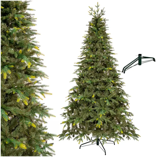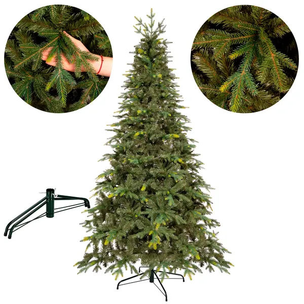 Természetes hatású luc műfenyő 240 cm, négykarú fém talppal