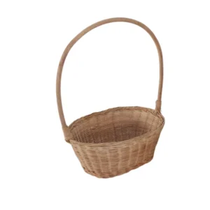 Kézzel készült, természetes rattanból fonott kosár, amely stílusos és praktikus megoldást nyújt a mindennapi tároláshoz otthon és útközben.