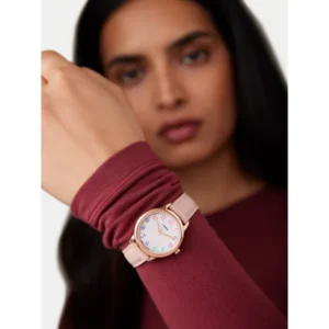 A Timex Easy Reader TW2W32300 elegáns, mégis könnyed választás a mindennapokra és ünnepibb alkalmakra is. A fehér számlapon elhelyezett, jól olvasható színes számok és a rózsaarany árnyalatú tok modern, nőies összhatást adnak, míg a rózsaszín bőrszíj kényelmes viseletet biztosít egész nap.