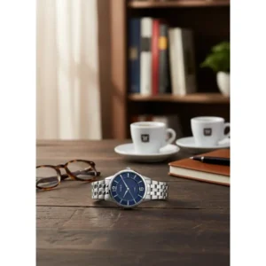 Elegáns, könnyen leolvasható sötétkék számlap és időtálló, ezüstszínű rozsdamentes acél kivitel a mindennapokra és alkalmakra. Kvarc pontosság, ásványi üveg a jobb ellenállóságért, valamint WR30 vízállóság a hétköznapi fröccsenésekhez; díszdobozzal ajándéknak is ideális.