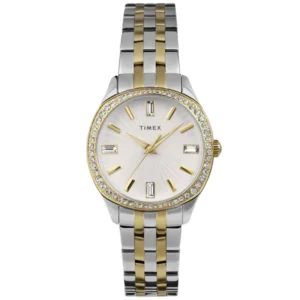 Timex Legacy női karóra fehér számlappal, dátummal, acél két tónusú