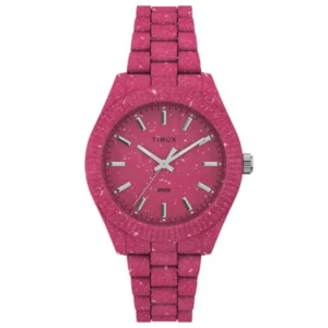 A Timex Legacy Ocean TW2V77200 egy stílusos, klasszikus megjelenésű női karóra, amely az eleganciát környezettudatos anyaghasználattal ötvözi. A 37 mm-es tok és a kényelmes szíj újrahasznosított műanyagból készült, így könnyű viselet a mindennapokban, miközben megőrzi a prémium összhatást.