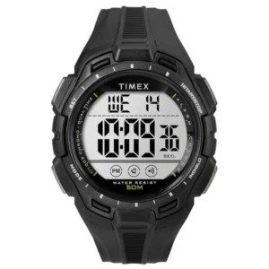 A Timex TW5M61700 egy könnyű, strapabíró sportos férfi digitális óra, amely a mindennapokban és edzés közben is megbízható társ. A jól olvasható kijelző, a praktikus funkciók és az INDIGLO® háttérvilágítás gondoskodnak róla, hogy minden helyzetben gyorsan ránézhess az adatokra – akár sötétben is.