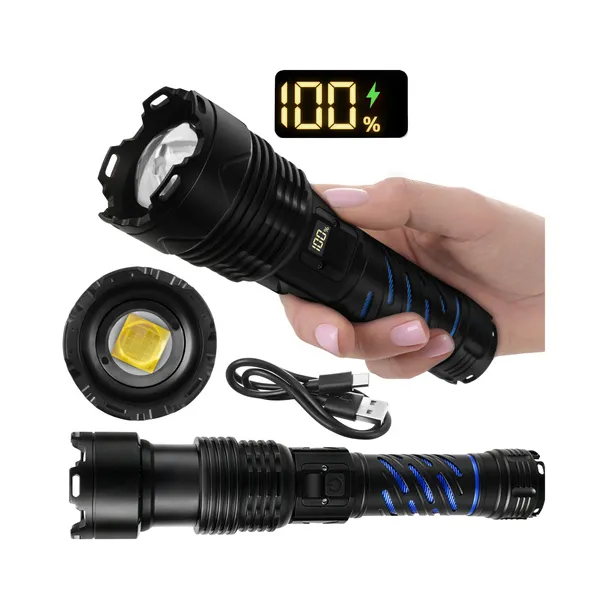 Amikor besötétedik, egy átlagos zseblámpa sokszor kevés fényt ad és gyorsan lemerül. Ez a 1500 lm fényerejű, tölthető taktikai LED zseblámpa nagy kapacitású 5000 mAh akkumulátorral, zoomos fókuszállítással és több üzemmóddal gondoskodik a megbízható megvilágításról otthon, az autóban és a szabadban.
