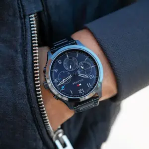 A Tommy Hilfiger 1791853 Asher férfi karóra elegáns és modern választás azoknak, akik a klasszikus megjelenést kifinomult részletekkel szeretnék ötvözni. A rozsdamentes acél tok és a hozzá illő acél szíj harmonikusan egészíti ki a mélykék számlapot, így az óra karakteres, mégis időtálló megjelenést kínál mindennapi és alkalmi viselethez.