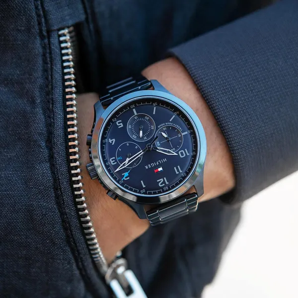 Tommy Hilfiger Asher férfi kvarc karóra acél szíjjal, kék