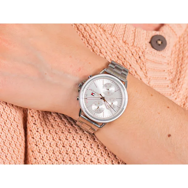 A Tommy Hilfiger Carly 1781787 női karóra az elegancia és a modern, letisztult stílus találkozása. Az ezüstszínű tok és a minimalista, ezüst számlap kifinomult megjelenést ad, így könnyen illeszkedik irodai viselethez és alkalmi öltözékhez is. A кварц szerkezet pontos időmérést biztosít, a rozsdamentes acél szíj pedig tartós, kényelmes választás a mindennapokra.