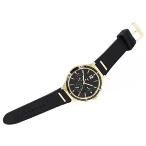Elegáns, mégis kényelmes viselet fekete szilikon szíjjal, aranyszínű tokkal és könnyen kombinálható megjelenéssel. A praktikus dátum- és 24 órás kijelzés, valamint a pontos kvarc szerkezet megbízható társ a mindennapokban.