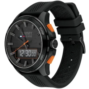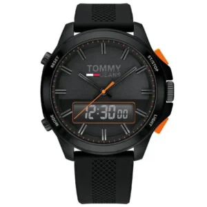 A Tommy Hilfiger 1791763 férfi karóra modern, analóg-digitális megjelenésével remek választás mindennapokra és sportos szettekhez is. A fekete tok–számlap–szíj összeállítás letisztult, könnyen kombinálható stílust ad, miközben a rozsdamentes acél kivitel tartós és korrózióálló. Az időmérésről megbízható kvarc szerkezet gondoskodik, amelyet elem működtet. A 3 ATM (WR30) vízállóság a hétköznapi fröccsenések ellen nyújt alapvető védelmet.