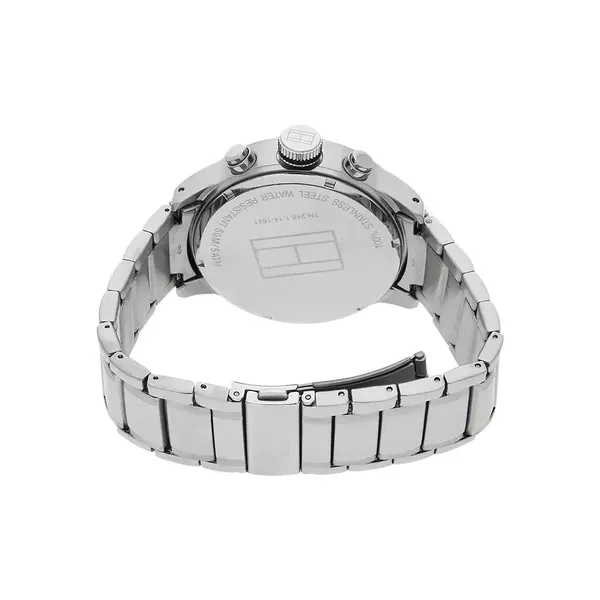 A Tommy Hilfiger 1791053 Trend férfi karóra stílusos választás mind elegáns, mind hétköznapi öltözethez. A tok és a szíj ezüstszínű rozsdamentes acélból készült, amely időtálló megjelenést és kényelmes viseletet biztosít. A sötétkék számlapot ásványi üveg védi, így a karóra praktikus és mutatós kiegészítő a mindennapokra.