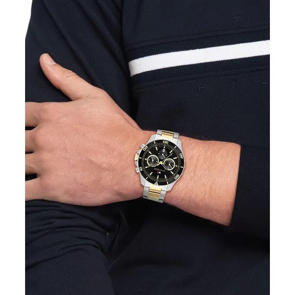 A Tommy Hilfiger Jordan 1792095 férfi karóra klasszikus és időtálló megjelenést kínál a modern hétköznapokra és az elegáns alkalmakra. A modell ezüstszínű rozsdamentes acél tokot és szíjat kapott, amelyet fekete számlap egészít ki. A számlapot ásványi üveg védi, a kvarc szerkezet pedig pontos és megbízható működést biztosít.