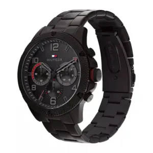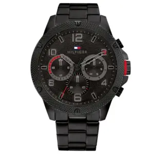 A Tommy Hilfiger 1792030 férfi karóra a férfias elegancia és a sportosan laza megjelenés harmonikus kombinációja. A nagy, fekete számlap, a fekete acél tok és a kényelmes nemesacél szíj modern, sokoldalúan viselhető összhatást teremt. Kvarc szerkezete megbízható működést biztosít, míg az 5 ATM vízállóság alkalmassá teszi a modellt a mindennapi használatra és az aktívabb napokra is.