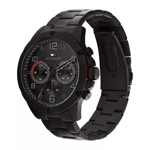 Tommy Hilfiger férfi karóra, fekete acél szíjjal, кварc, 5 ATM