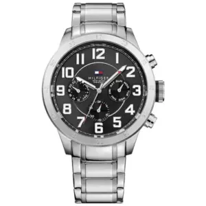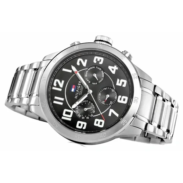 Tommy Hilfiger férfi karóra, fekete számlap, acél szíj, 46 mm