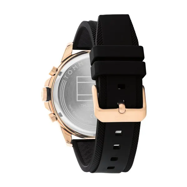 A Tommy Hilfiger 1792028 férfi karóra a letisztult eleganciát sportos kényelmmel ötvözi. A nagy, fekete számlap és a rozéarany árnyalatú, acél tok modern megjelenést ad, a puha szilikon szíj pedig egész nap komfortos viselet. A кварc szerkezet megbízható pontosságot nyújt, az 5 ATM vízállóság pedig a mindennapi fröccsenések és rövid vízzel érintkezés mellett is magabiztossá teszi.