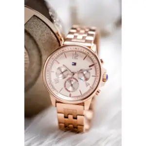 A Tommy Hilfiger Harper 1782224 női karóra elegáns és sokoldalú választás a mindennapokra. A rozéarany színvilág kifinomult megjelenést ad, miközben a rozsdamentes acél tok és szíj tartós, kényelmes viseletet biztosít. A letisztult, kerek számlapot ásványi üveg védi, a pontos кварc szerkezet pedig megbízható működésről gondoskodik.