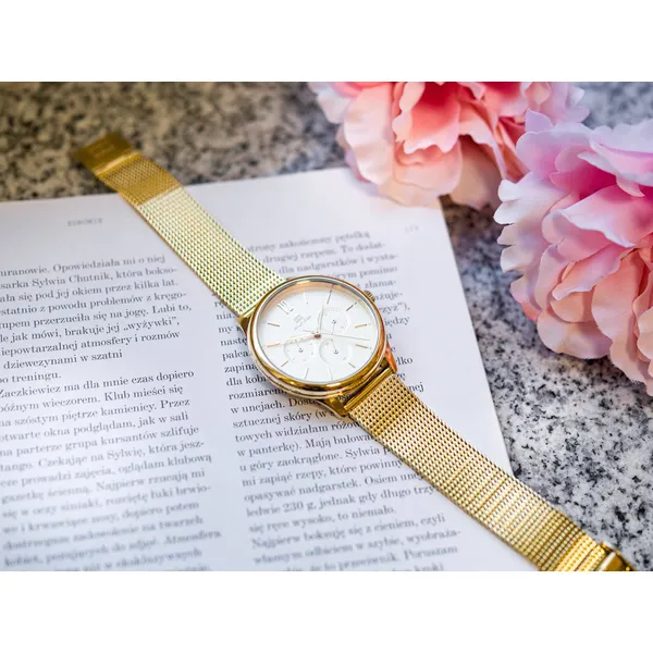 Elegáns aranyszínű, rozsdamentes acél női karóra, amely pontos kvarc szerkezetével megbízható társ a rohanós hétköznapokban, míg WR30 vízállósága megóvja a fröccsenő víztől. Stílusos díszdobozban érkezik, így tökéletes ajándék választás is.