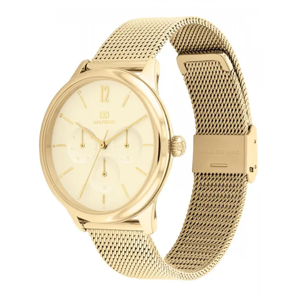 A Tommy Hilfiger Layla női karóra elegáns aranyfényével és megbízható kvarc szerkezetével kiemeli a viselője stílusát a mindennapokban és alkalmakon egyaránt.