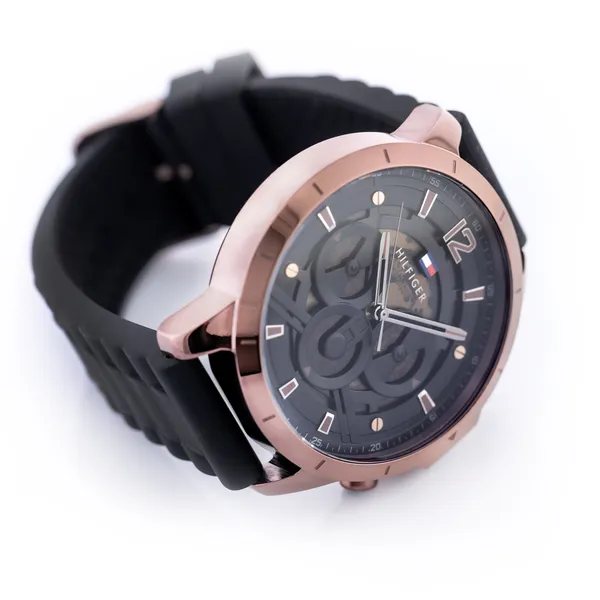 Tommy Hilfiger Luca 1710491 férfi karóra stílusos, lezser megjelenésével könnyen illik a hétköznapi és az elegánsabb szettekhez is. A barna színű, rozsdamentes acél tok tartós és korrózióálló, a fekete számlapot pedig ellenálló ásványi üveg védi a karcolásoktól és a kisebb ütődésektől. A piros szilikon szíj kényelmes viseletet biztosít a mindennapokban.
