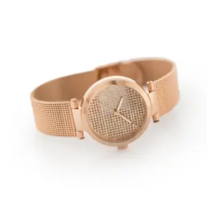 Elegáns, rozéarany színű női karóra rozsdamentes acél kivitelben, amely stílusos megjelenést és tartós mindennapi használatot kínál. A kvarc szerkezet, a minerálüveg és a díszdobozos csomagolás praktikus és ajándéknak is ideális választássá teszi.