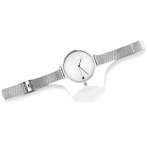 Elegáns, ezüstszínű női karóra rozsdamentes acél karkötővel, amely könnyen illeszkedik hétköznapi és alkalmi szettekhez. A kvarc szerkezet pontos működést, az ásványi üveg és a 3 ATM vízállóság pedig praktikus, mindennapi használatot biztosít.