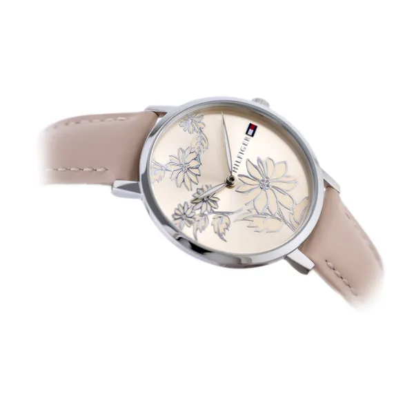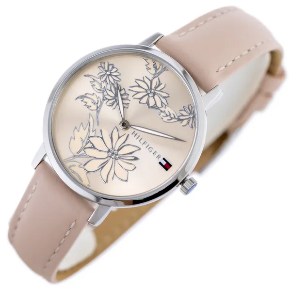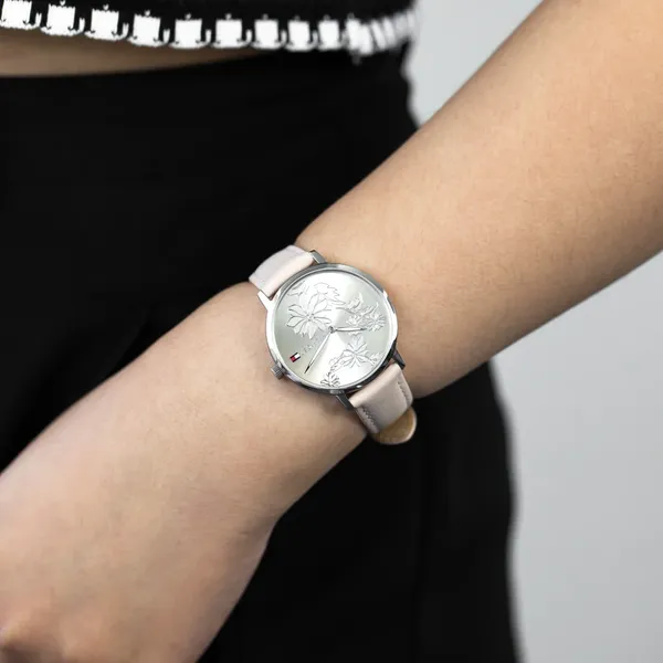 Az ikonikus Tommy Hilfiger Pippa női karóra tökéletes választás, ha finom eleganciával szeretné kiegészíteni mindennapi vagy alkalmi öltözékét. A 35 mm-es, ezüstszínű nemesacél tok tökéletesen harmonizál a virágmintás, pasztell rózsaszín számlappal, míg a puha, valódi bőrszíj kényelmes viseletet biztosít.