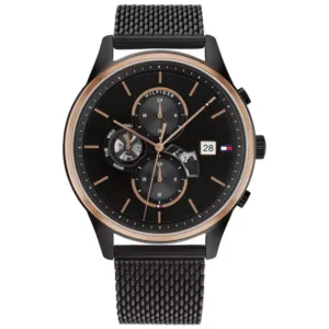 Tommy Hilfiger Weston férfi karóra, rozéarany 44 mm acél tok, fekete számlap