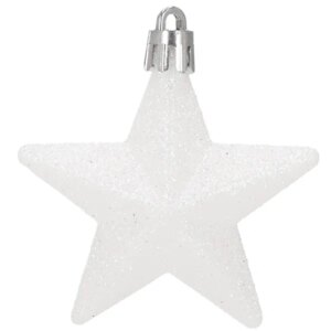 Törhetetlen fehér csillag karácsonyfadísz 6 db, 5,8 cm, műanyag