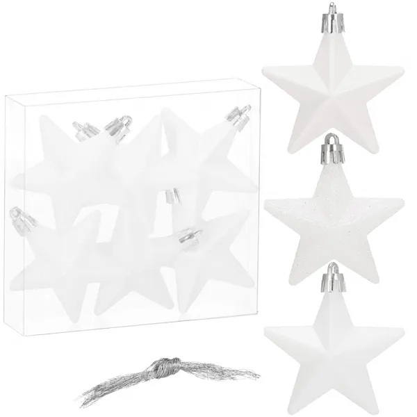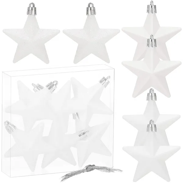 Hangulatos, törhetetlen fehér csillag díszekkel egyszerűen ünnepi fényt varázsolhat karácsonyfájára. A 6 darabos készletben háromféle felület található (csillámos, fényes, matt), így izgalmas textúrával gazdagíthatja a dekorációt.