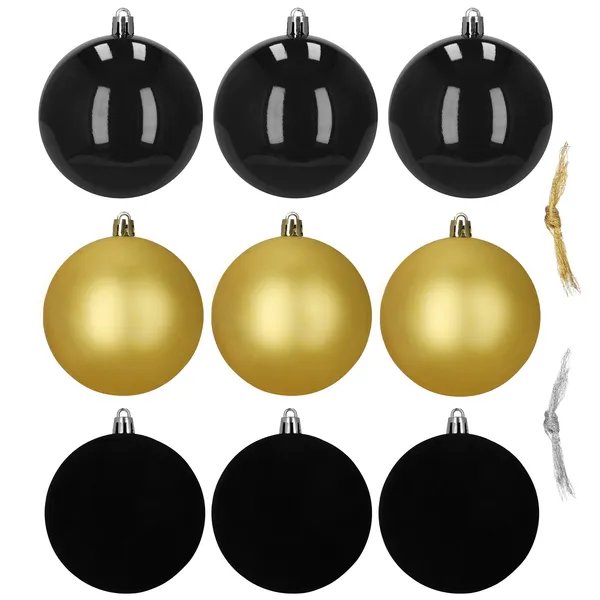 Törhetetlen karácsonyi gömbdísz készlet 8 cm, 9 db, fekete–arany–grafit