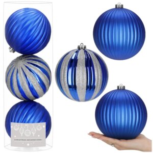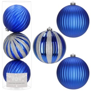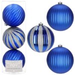 A látványos 15 cm-es gömbdíszek törhetetlen műanyagból készülnek, ezért gyerek- és kedvencbarát megoldást kínálnak; a kék, fehér és ezüst csillámos felület elegáns ragyogást ad a fának, a mellékelt akasztók pedig azonnali felhelyezést tesznek lehetővé.