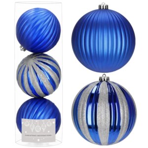 Törhetetlen kék-fehér karácsonyi gömbdísz szett, 15 cm, 3 db