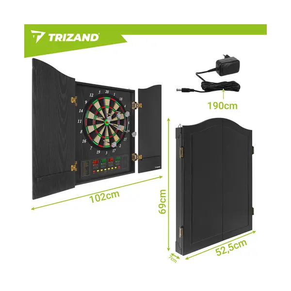 Hozd el a pub darts hangulatát az otthonodba a Trizand elektronikus dart táblával! Az automatikus pontszámítás, a 27 játék és 243 játékváltozat, valamint a zárható, ajtós kivitel garantálja, hogy a játék mindig látványos, kényelmes és rendezett maradjon. Tökéletes családi estékhez, baráti összejövetelekhez vagy akár otthoni mini bajnokságokhoz.