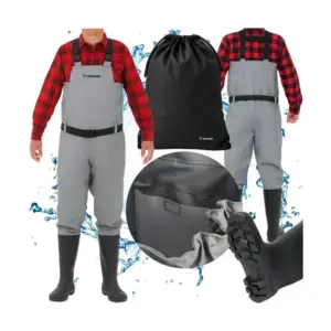 Teljesen vízálló, vastag PVC kialakítása és csúszásgátló talpa biztonságos, kényelmes használatot nyújt horgászathoz és vizes terepen. Az állítható pántoknak és az ergonomikus szabásnak köszönhetően hosszabb időn át is komfortosan viselhető.