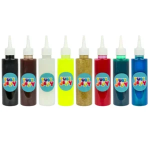 • 8 db 150 ml-es színes gél: kék, fehér, piros, neon, barna, türkiz, fekete és csillámos