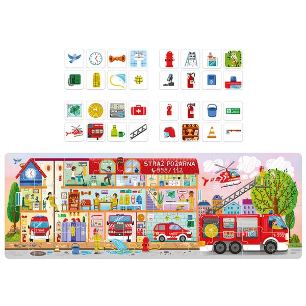 Tűzoltóság 40 darabos oktató puzzle, 32 részletes kártya, 3+ év