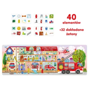Szeretnéd, ha gyermeked játék közben ismerkedne a tűzoltók bátor munkájával? A 40 darabos, élénk színű puzzle valósághű jelenetekkel mutatja be a tűzoltóállomást, a fecskendős autókat és a mentőfelszerelést, miközben a kicsik finommotorikája, logikája és megfigyelőkészsége is fejlődik.