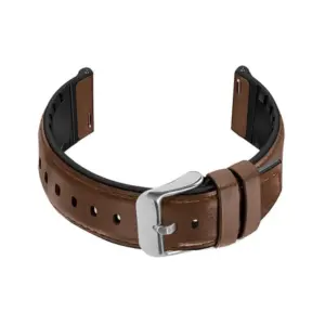 Kényelmes, sötétbarna gumióraszíj ezüstszínű csattal és gyorskioldós kialakítással, amely megkönnyíti a cserét szerszám nélkül. Tartós anyaga ideális mindennapi viselethez, a 20 mm-es csatlakozás pedig sok óratokhoz jól illeszkedik.