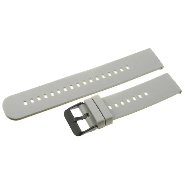 Világosszürke színű gumiszíj fekete fémcsattal.