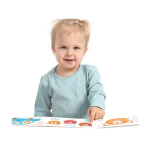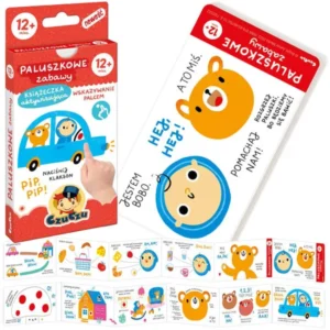 Az Ujjjáték fejlesztő harmonikakönyv egy 98 cm hosszú, kihajtható „harmonika”, amely 12 oldalnyi, gyönyörűen illusztrált feladattal segíti a babák koncentrációjának, szem-kéz koordinációjának és finommotoros készségeinek fejlesztését 12 hónapos kortól.