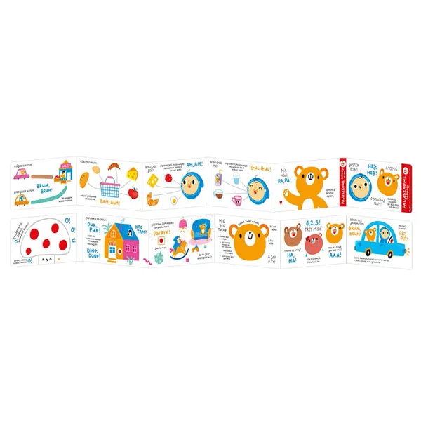 Fejlesztő harmonikakönyv, amely szórakoztató feladatokkal ösztönzi a babák finommotorikus és szem-kéz koordinációját, valamint bővíti a koncentrációs képességüket. Kompakt kialakítása és 98 cm-es, 12 oldalas kihajtható hossza ideális otthoni és útközbeni közös böngészéshez, sok nevetéssel, és megunhatatlan, színes illusztrációival hosszú ideig leköti a kíváncsi tekinteteket.