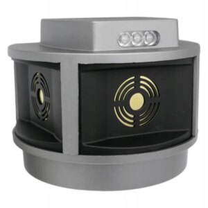 A TRIO-STROB fejlett ultrahangos riasztó, amely hatékonyan segít távol tartani a nyestet, menyétet, patkányt és egeret a védeni kívánt területtől. Kültéri és beltéri használatra egyaránt alkalmas. A készülékben három nagy hatásfokú, professzionális piezo ultrahangos sugárzó, valamint nagy fényerejű LED-es stroboszkóp panel dolgozik. A hangszórók három irányba, egymásra merőlegesen helyezkednek el, így akár 270°-os lefedettséget biztosít.